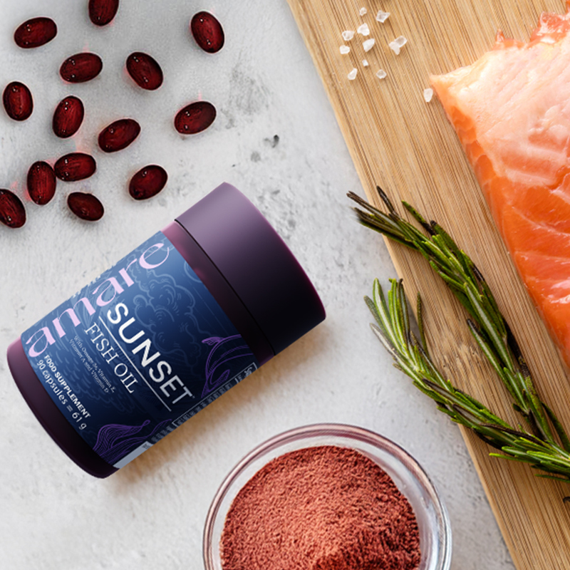 Az Amare Sunset™ egy prémium összetételű étrend-kiegészítő, amely omega-3 zsírsavakat (EPA, DHA), valamint A-, D3- és E-vitamint és asztaxantint tartalmaz. A gondosan összeállított formula hozzájárul a szervezet alapvető tápanyagellátásához, támogatva a mindennapi kiegyensúlyozott életmódot.